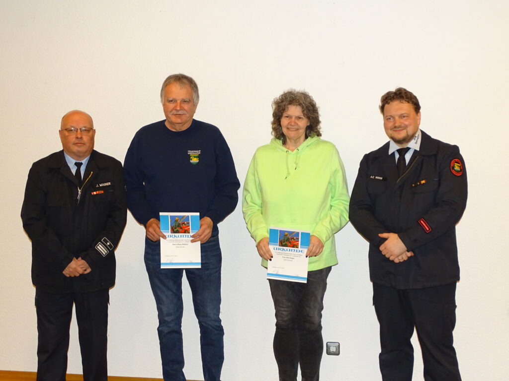 Für ihre langjährige Mitgliedschaft im Förderverein der Feuerwehr Ebersgöns wurden Rita Böger (40 Jahre) und Klaus Althenn (50 Jahre) ausgezeichnet.